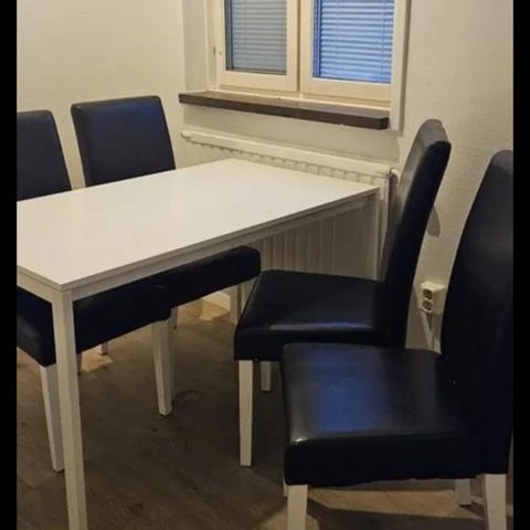 Säljer 6 st stolar av modell Börje. Tyget på dynorna är slitet men ok. Tyget är mycket lätt att byta ut. Endast 4 stycken skruvar som håller dynan och nytt tyg kan svepas över dynan innan den åter skruvas fast. I enklaste fallet behöver du inte sy utan endast klippa tyg i lagom storlek så det går att vika runt dynan.