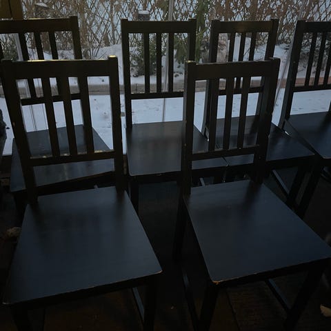 Jag kommer att tvätta tyget på dynorna innan du hämtar men väntar tills jag vet att någon vill ha stolarna.