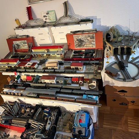 Modelljärnvägen skala N. 4 hus + 15 figurer