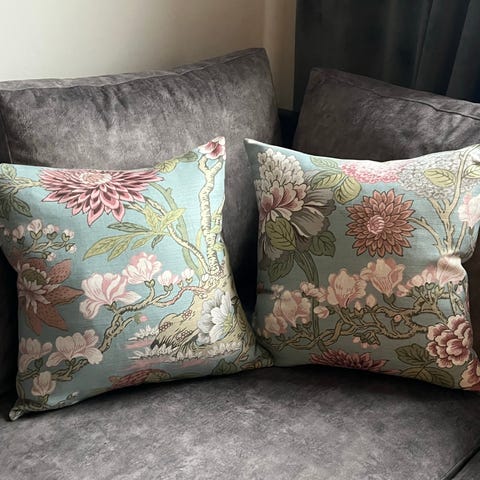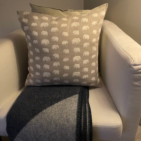 En vacker kuddfodral i tjockare bomull i tyg från Svenskt Tenn / färgglatt randigt mönster. Back sidan enfärgad tyg i bomull / dragkedja på botten/ innerkudde ingår/ 39x39