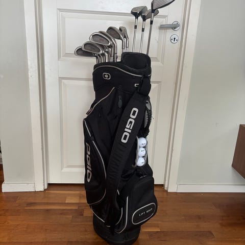 HÖGER GOLFSET! Regnhuva är med! 3 stora förvaringsfack och 2 mindre. Med paraply. Verktyg till drivern följer med!