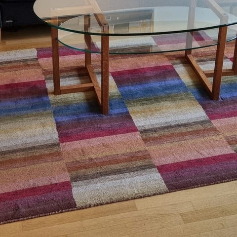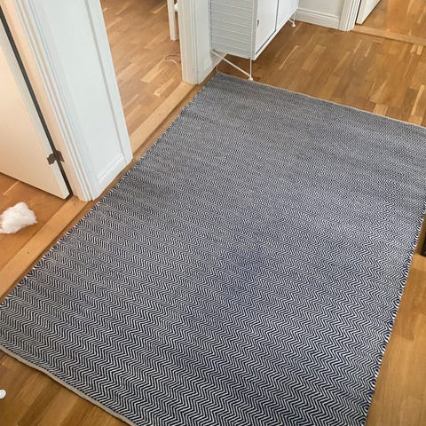 Superfin rund matta i kohudsbitar. Diameter 140cm. Finns och hämtas i Solna Centrum. Paketerad och ihoprullad.