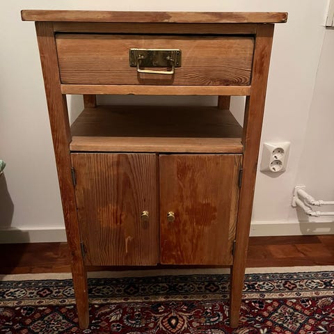 Gammalt med slitet men coolt pottskåp behöver rengöras och kärlek.