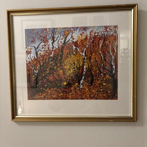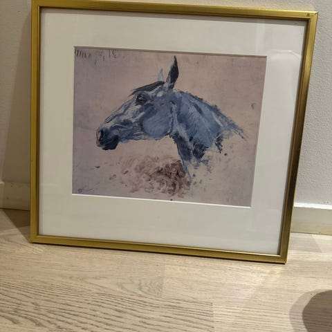 Ulla-Britt Lagerqvist oljemålning föreställande ett rådjur. Guldfärgad ram. Storlek 48 x 58 cm. Pris 550 kr.