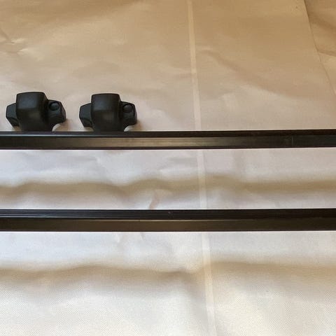 2 stycken Volvo Original Takmonterade Cykelhållare. Tillverkad med aluminium och plastmaterial. Designad för montering på taket av bil för transport av cykel. T-rack kompatibel. Knappast använt. Lite dammiga. Priset är för båda. 1250:- för en. Nypris 2125:- 2 paket Fatbike Wheel Straps ingår. Nycklar med.