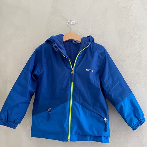 Ljusblå vinterjacka i storlek 98 från Kuling i använt men bra skick. Ekorre-reflexen på ena armen har vi satt dit själva, den har börjat släppa något i kanterna men det är inget som påverkar funktionen.