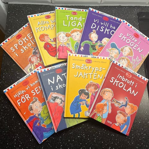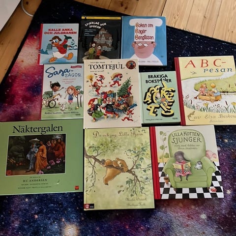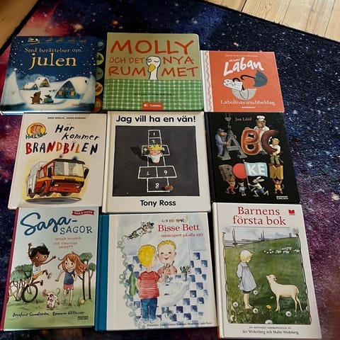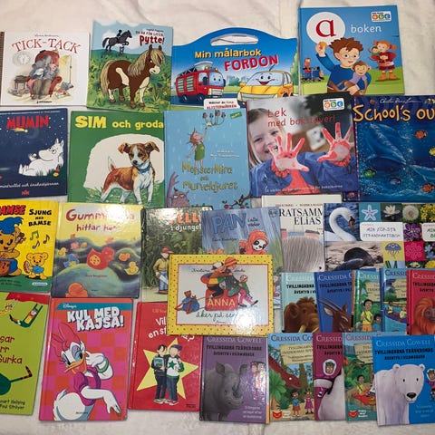 Stor samling barnböcker, mycket fint skick. Finns i centrala Strängnäs.