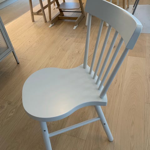 IKEA stol med grön sits och ryggstöd i slätt material. Stolen har ett underrede i metall med slädeben. Passar som matstol vid matbord eller som extra stol i vardagsrum eller arbetsrum. Neutral färg som fungerar i många olika inredningsstilar. 6 stycken. Stapelbara.