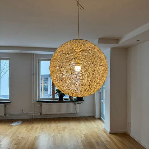 Taklampa med känsla av pappershantverk, som ny. Ledlampa medföljer. Hämtas på plats.