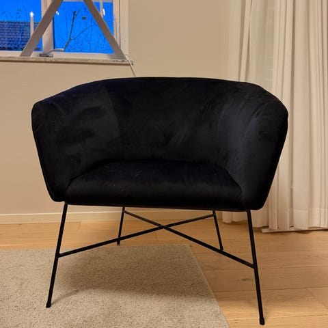 Ellos Fåtölj Stories med mönstrat tyg i svart och vitt. Passar som sittplats i vardagsrum eller andra rum där extra sittmöbler behövs.