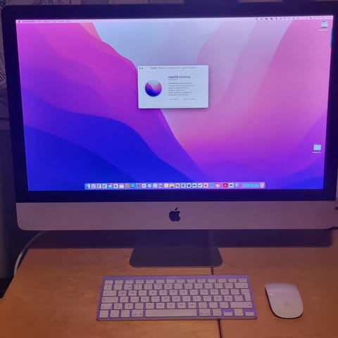 Apple iMac Retina 4K 21.5-tum från 2017 med 3 GHz Quad-Core Intel Core i5 processor, Radeon Pro 555 grafik, 8 GB 2400 MHz DDR4 minne, och macOS Ventura 13.7.8 operativsystem. Modellen är avsedd för stationär användning och har en skärmupplösning på 4K. Hårdisken är 1 terabyte. Apple magic mouse och logitech mekaniskt tangentbord ingår. Datorn är välskött och i fint skick.