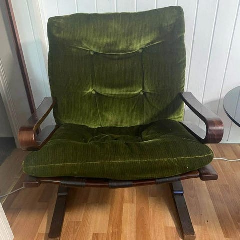 Grön fåtölj med fotpall