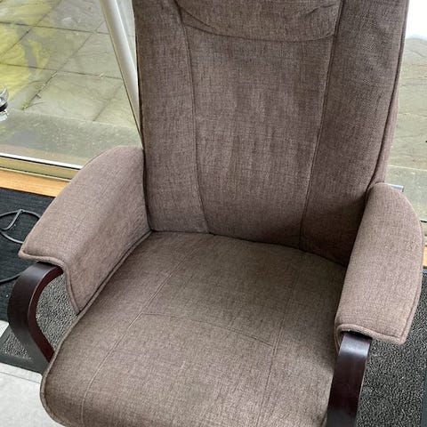 Grön tygfåtölj med fotpall säljes.