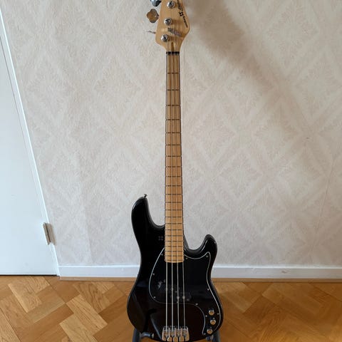 En trevlig p bas av okänt märke i fint relicerat skick lättspelad m bra ljud - låg vikt 3.2 kg En rolig grej med denna bas är att Håkan Hemlin i Nordman har haft den i sin ägo tidigare Basen har fått en uppfräschning av mej med inoljad greppbräda nya strängar och en kul logga levereras med gig bag Kan provas o hämtas i Sörforsa