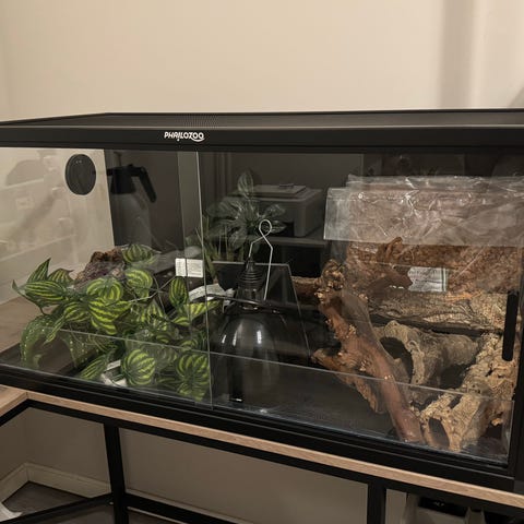 Säljer nu vårat terrarium på ställning då vi skaffat ett annat.