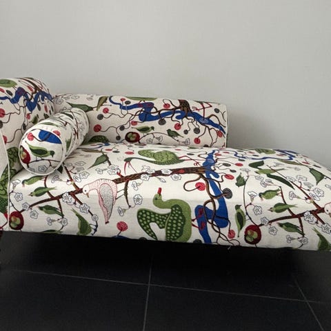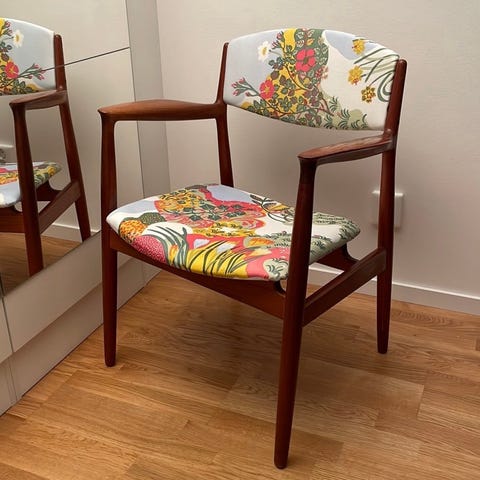 Fåtölj i teak med tyg från Svenskt tenn