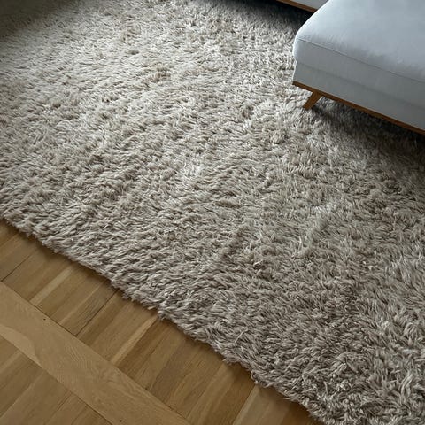 Ullmatta med ormmotiv i svart, vit och grå. En underbar matta i Nya Zeeländsk ull, handknuten.