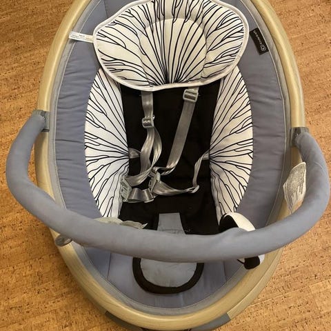 4 moms elektriska vagga fungerar som den ska och vaggar din bebis i korta stunder så du får händerna fria i någon minut.