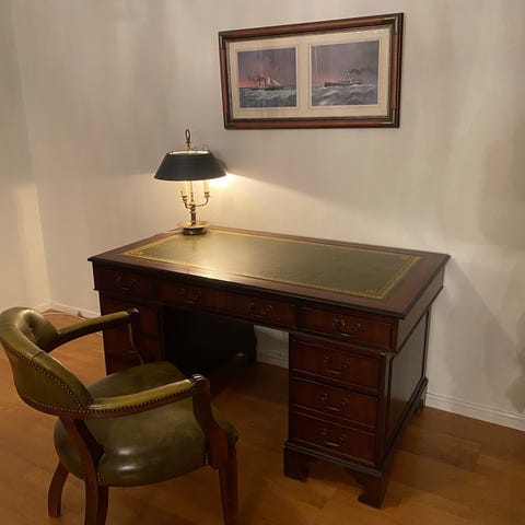 Antikt skrivbord i trä med lådor