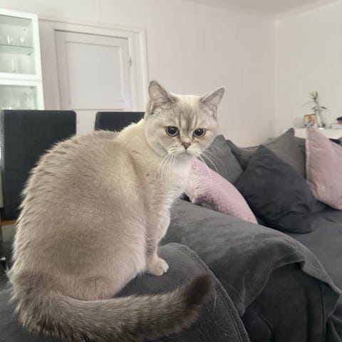 Hon är en brittisk korthårig hona som jag har ägt i nästan fem år. Hon har alla papper i ordning och är registrerad hos SVERAK. Katten är inte kastrerad.