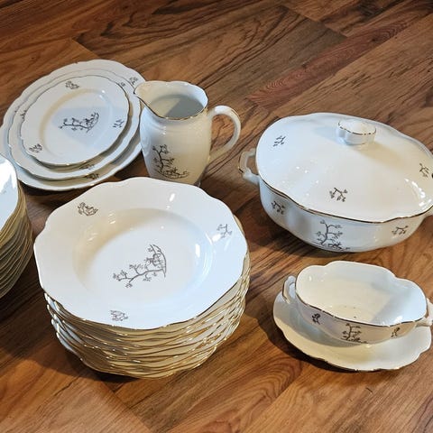 Björnbärsservis – bohemiskt porslin, Tjeckien 1940–50-tal (komplett)