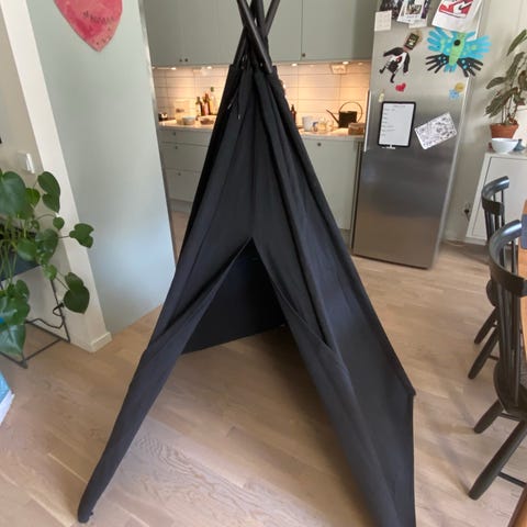 Min dotter har älskat sitt fina lektält, men har nu tyvärr vuxit ifrån det. Tipin är handgjord och av mycket hög kvalitet.
