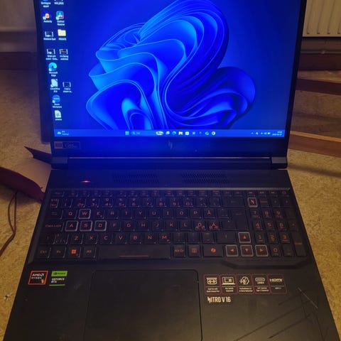 Acer Gaming Laptop med svart chassi och bakgrundsbelyst tangentbord. Utformad för spel och prestandakrävande användning.