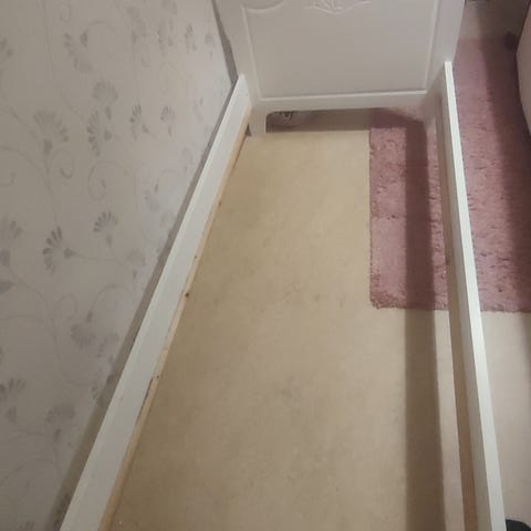 Säng utan madrass liten skada, se bild. Skickar med sängbordet också. B110/L220 /Gavlar 93/60/ Stolparna 125.