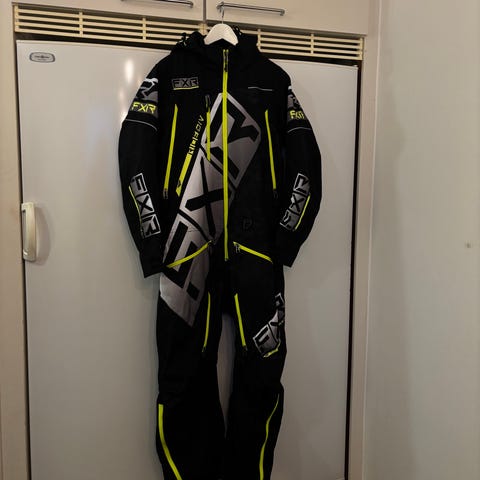 FXR Snocross overall i svart och röd färg. Materialet är slitstarkt och anpassat för vinterförhållanden.