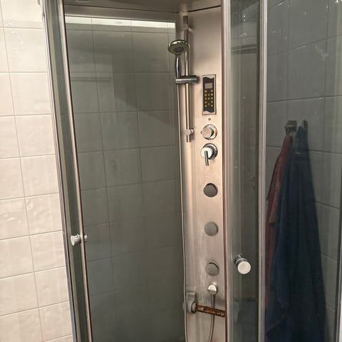 Säljer en rymlig och välutrustad duschkabin från Potier, ca 120×120 cm och ca 200 cm hög. Perfekt för dig som vill ha spa-känsla hemma.