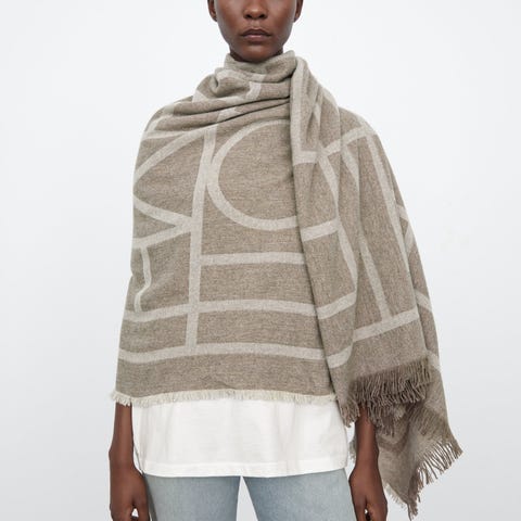 Beige stor ullhalsduk från toteme. Monogram jacquard wool scarf bone. Aldrig använd.