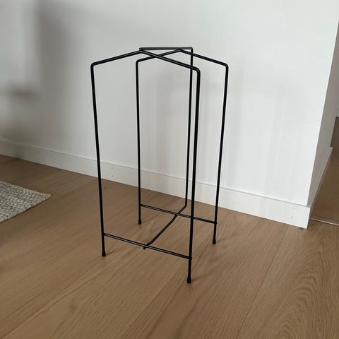 Väggmonterad tidskriftssamlare i svart metall med tre fack. Passar för förvaring av tidningar och liknande eller som i vårt fall kockböcker. Enkel industriell design som monteras på vägg.