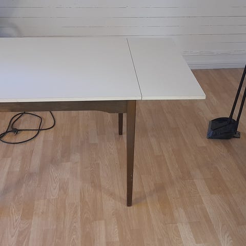 Har två mindre vita köksbord enl. bild och angivna mått. Säljes för 100 kr st.