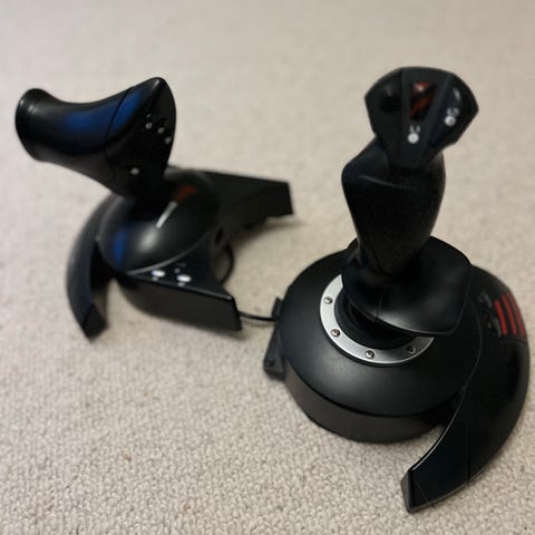 Joystick med gasreglage, knappt använd och funkar alldeles utmärkt. Fungerar till både Xbox och PC