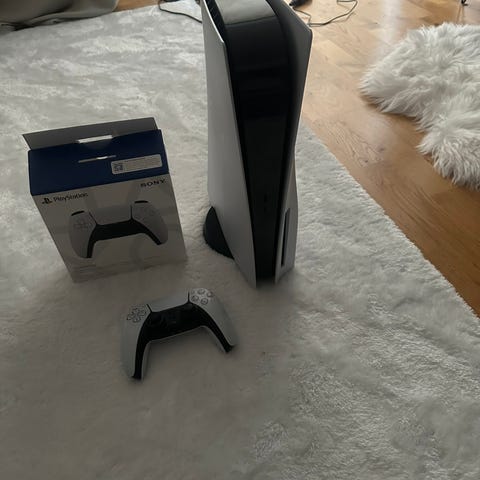Säljer mitt playstation 5 då det ej kommer till användning. Är inprincip i nyskick men den svarta kontrollen har tecken på användning. Ingår 2 kontroller samt alla nödvändiga sladdar så som HDMI-kabel samt strömsladd