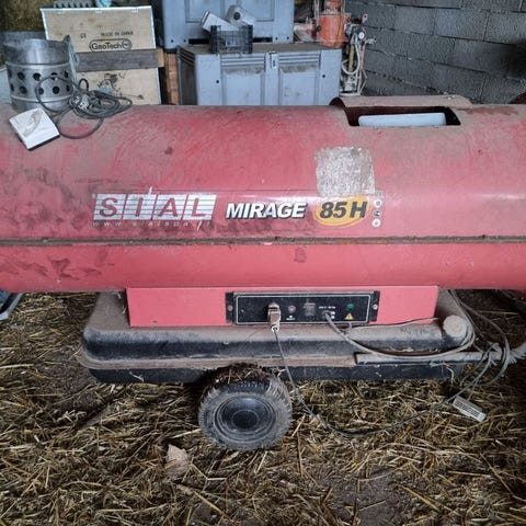 Star 35 värmefläkt i röd färg. Utrustad med hjul för enkel förflyttning. Används för uppvärmning av större utrymmen. El/ Diesel driven. Hämtpris!
