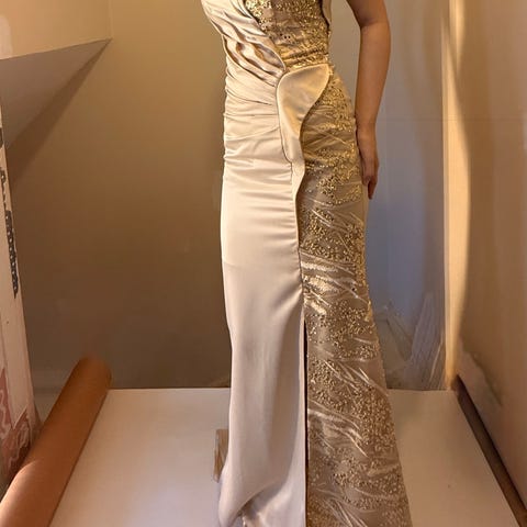 Lyxigt material perfekt till bal, bröllop, student, tärna eller annan fest.
