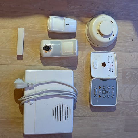 En komplett hemlarm system 2G med 3st Pirer, 5st kontaktsensorer, en kraftfull utomhus siren, en huvudenhet, användar manual på svenska som förklara väldigt noga och nättströ till både utomhussiren och huvudenhet. Använd 1år