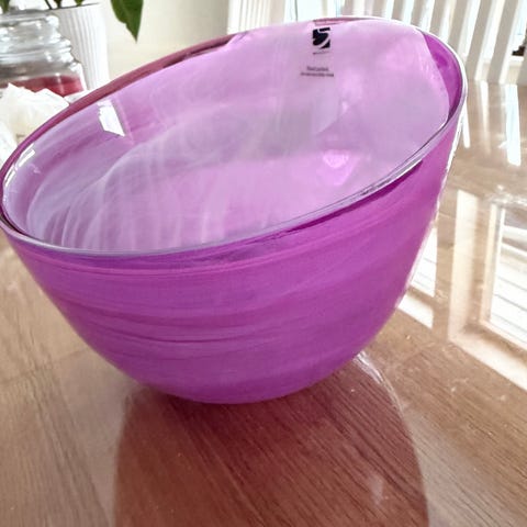 En vacker glasskål! Den kan även användas som dekoration.