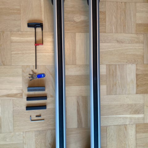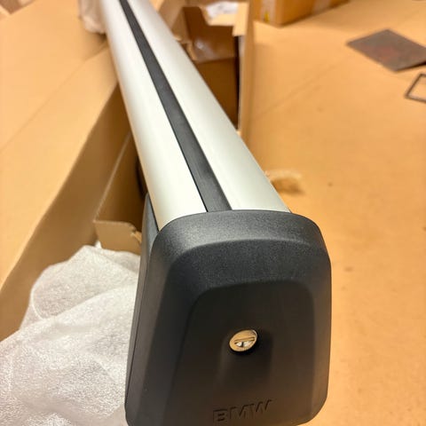 BMW Takräcke i aluminium med låsbar funktion. Passar för montering på biltak och används för att transportera extra last som cyklar, skidor eller bagage. Levereras med nycklar för säker låsning.