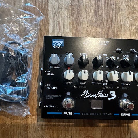 EBS HD360 basförstärkare på 360 watt. En proffsförstärkare, uppgraderingen av EBS HD 350, som nu har mer headrom (watt) och fler kontroller. Den nya modellen har ex valbar högtalarsimulering när man plockar signal från Line out. Använt detta vid studiojobb, som en EBS-preamp. Vidare har den gain, en bra kompressor, bas, svepbart mellanregister och diskant och en övre bright samt en drive som ger riktigt bra EBS-dist. Förstärkaren har dubbla högtalarutgångar. Den spelar högt. Nytt mjukcase kommer med, praktiskt att låta elkabel och högtalarkabel sitta kvar i stärkaren. Den klarar ner till 2 ohm. Nypris över 12.000kr.