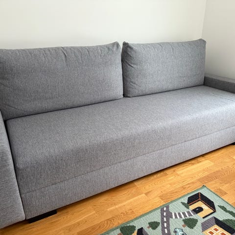 Holmsund bäddsoffa från Ikea. Inköpt i somras och har knappt använts sen dess, som ny! Väldigt praktisk och enkel att fälla ut samt en bra förvaring under divanen!