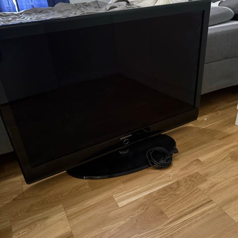 Samsung TV, svart färg, platt skärm, passar för vardagsrum eller liknande utrymmen.