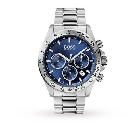 Hugo Boss herrklocka i modellen Peak. Svart stål med kronograf och länkarmband. Klockan har en mörk urtavla med tydliga visare och datumfunktion. Den skarpa 43 mm boetten i rostfritt stål, med silver urtavla och svart länk på 22 mm, ger en professionell look.
