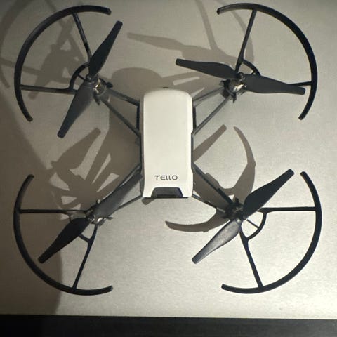 DJI NEO Mini drone i vit färg. Produkten består av en kompakt och lätt drone med skyddande propellerbågar. Passar användare som söker en mindre drone för enklare flygning och fotografering.