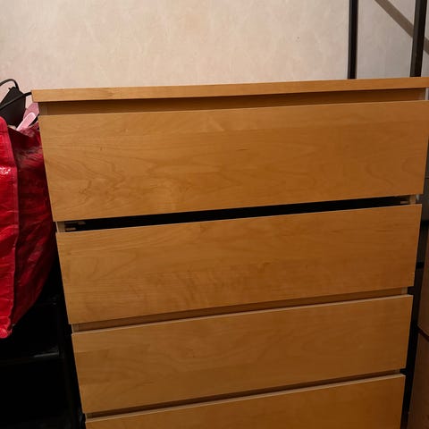 Tror det är 2 gamla ikea byråer, en av dom har en trasig bjälke så är tejpad. Allt funkar. 200 för den hela och 50 kr för den skadade. Köper man den hela kan man få båda för samma pris.