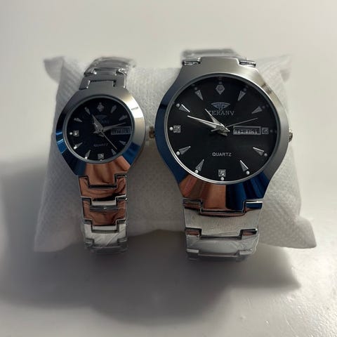 Klockor i quartzverk, ca 19x19mm och kommer i sitt originaletui.