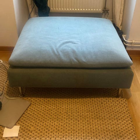 Klädseln på fotpallarna är lite smutsiga men det går att köpa ny klädsel på IKEAs hemsida