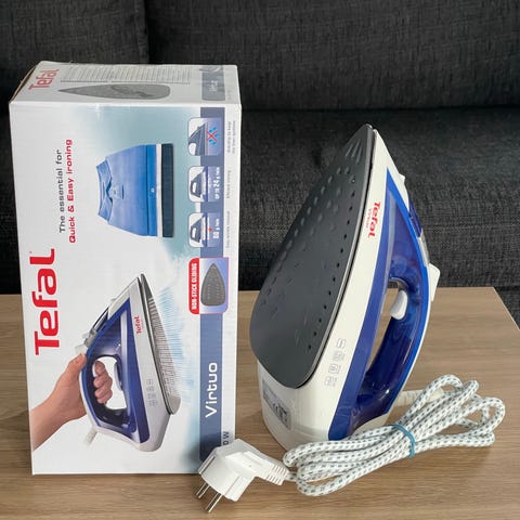 Plastställförvaring för strykjärnen är trasig efter flytt men inga skador på själva strykjärnet.