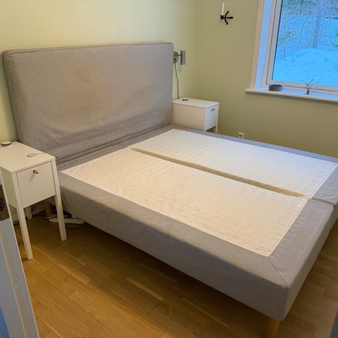 IKEA dunvik säng med bäddmadrass och sänggavel och ben